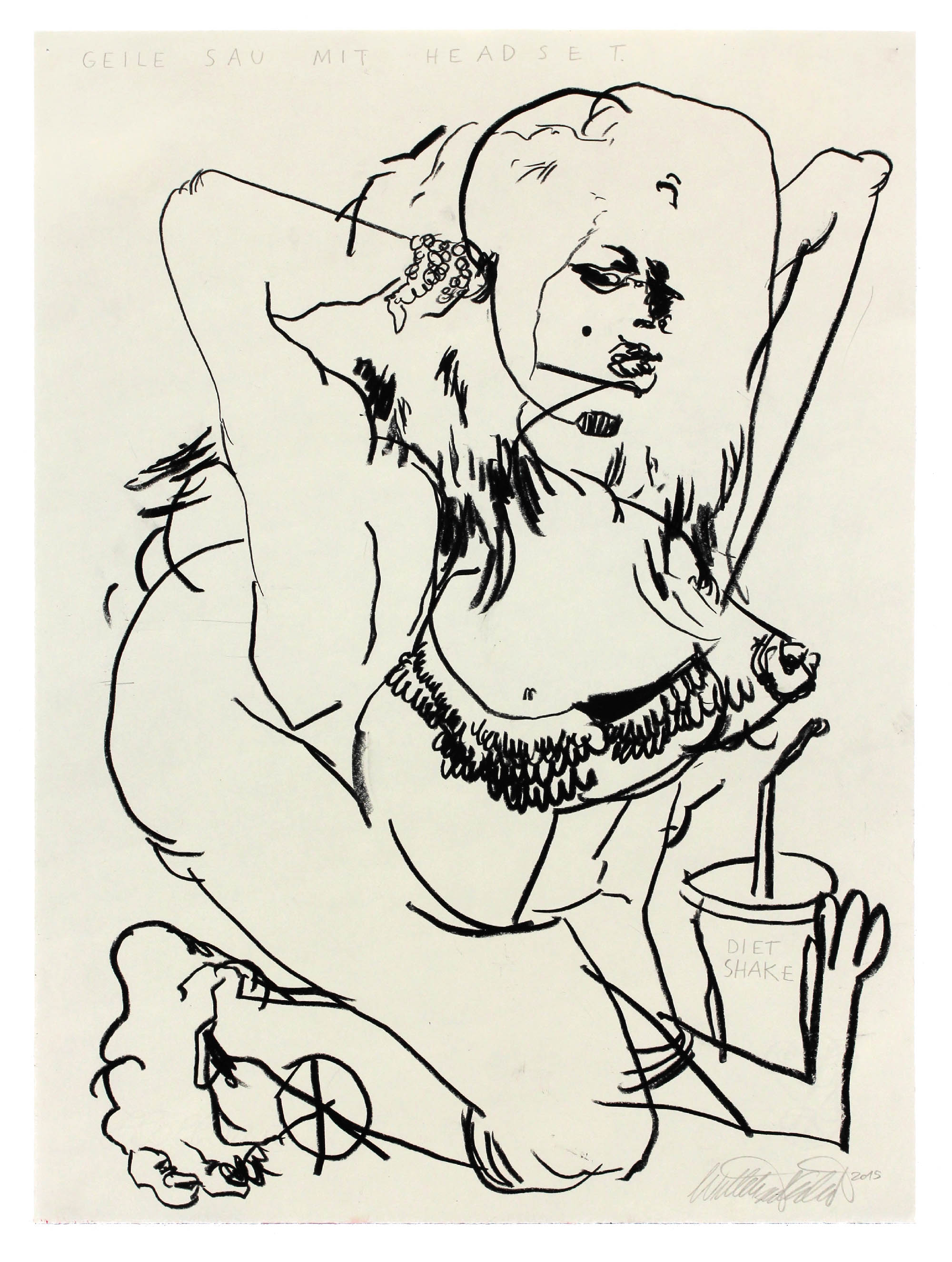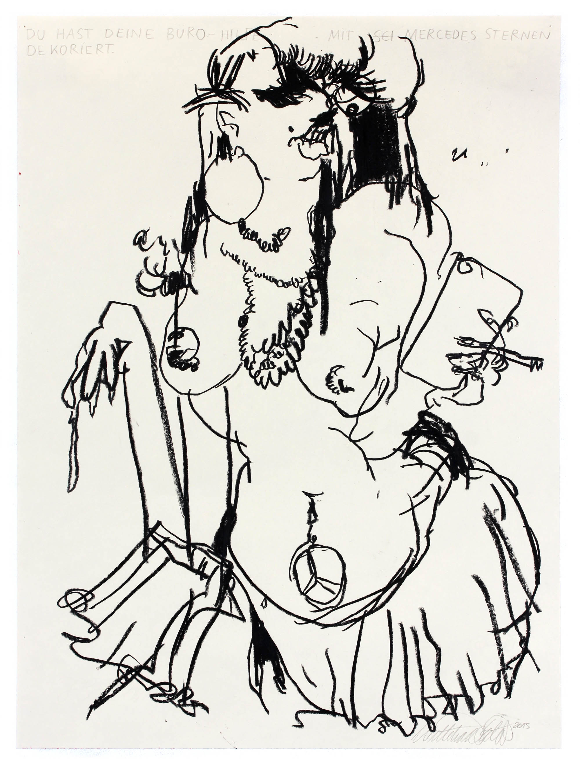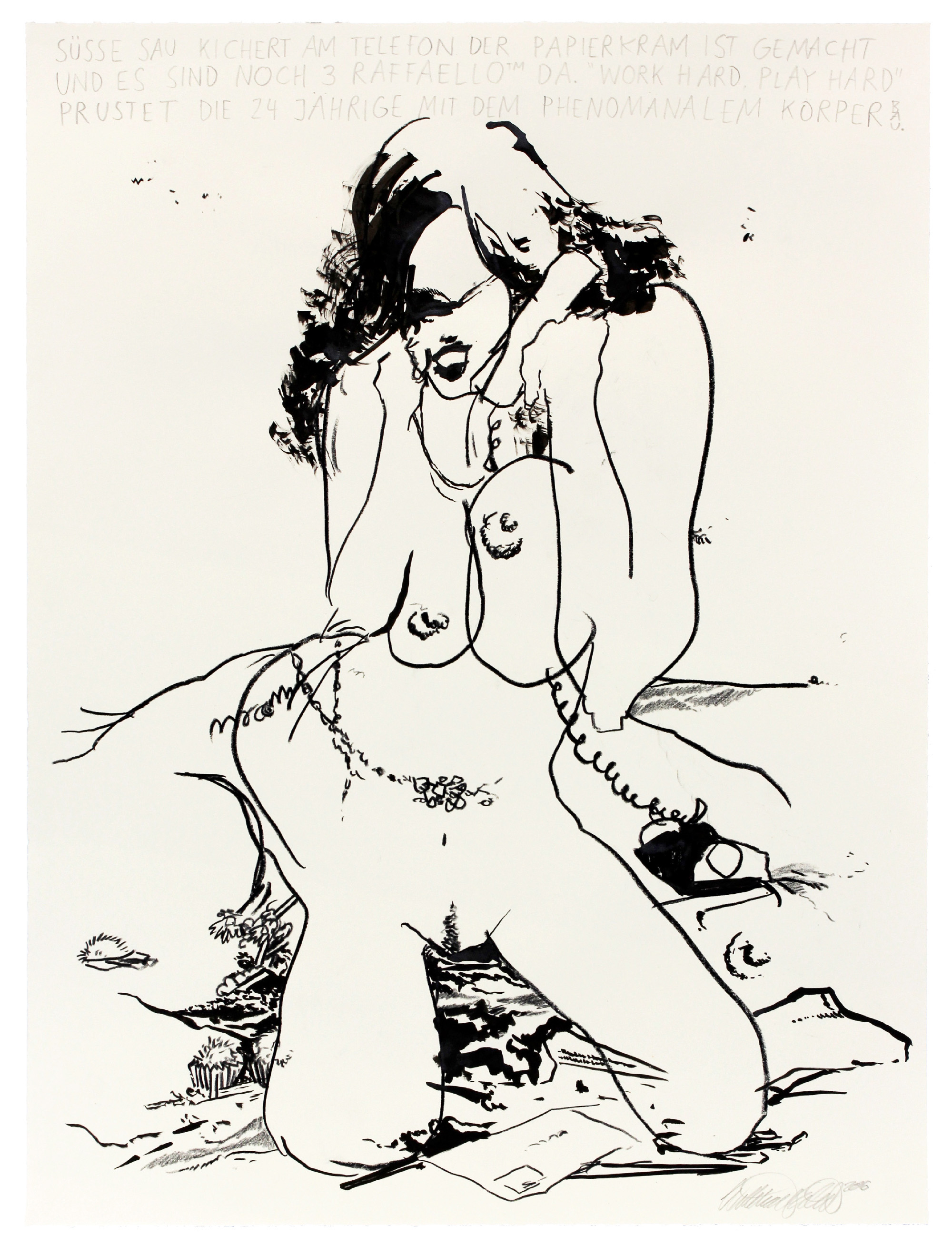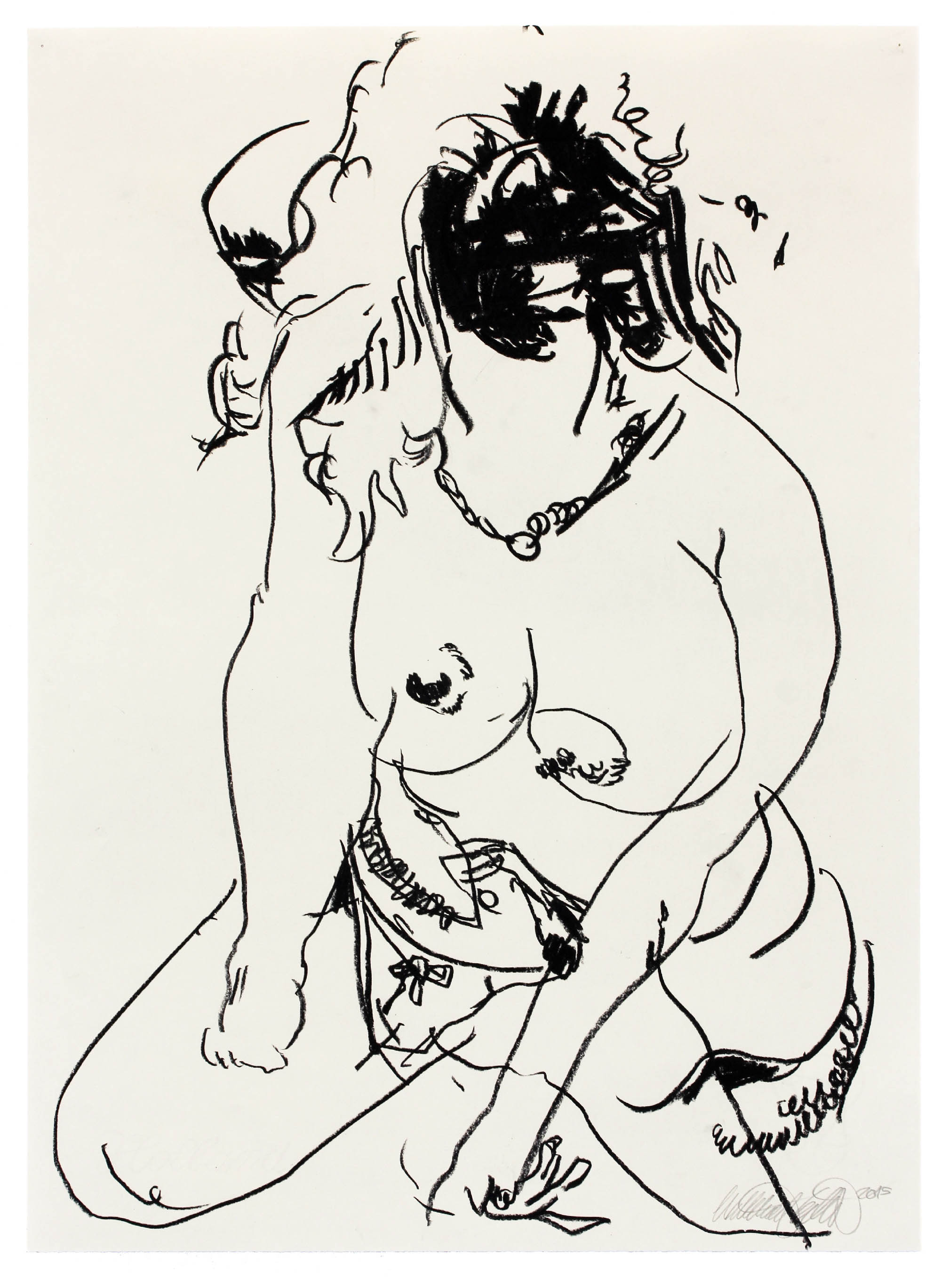 Blind drawings of classy women doing things. all drawings are wax on paper, 48x65cm