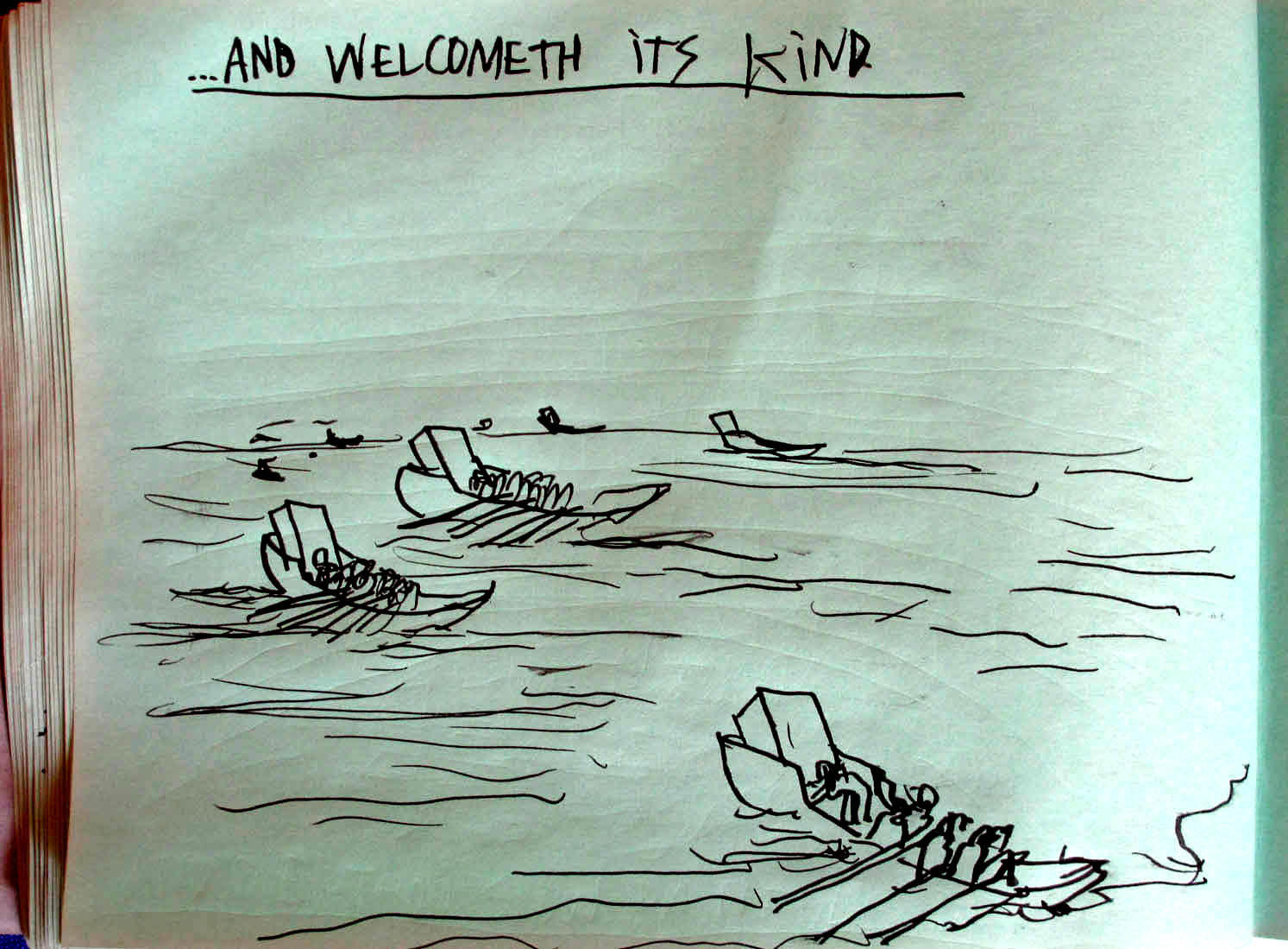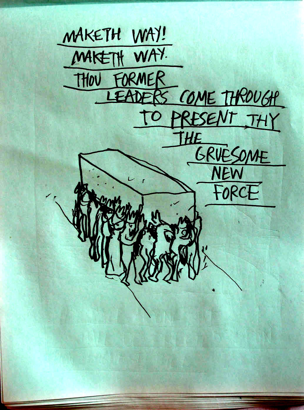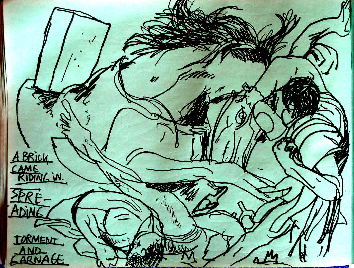 A short moral about a brick. As noted down in 2009. ink on invoice paper.