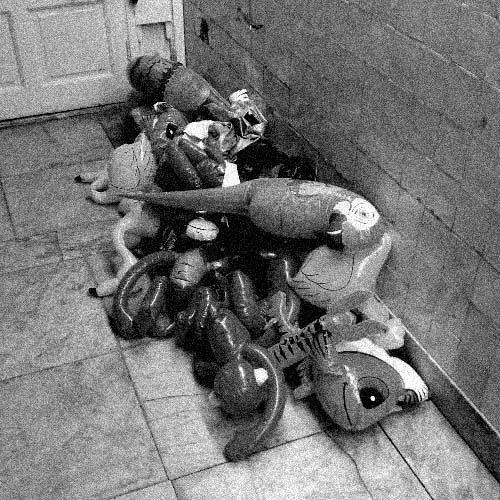 A pile of blow up animals in an advertising agencies basement. Amsterdam, NL