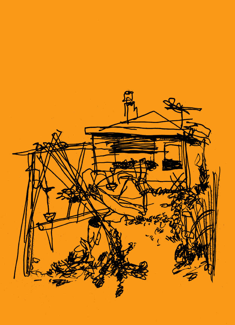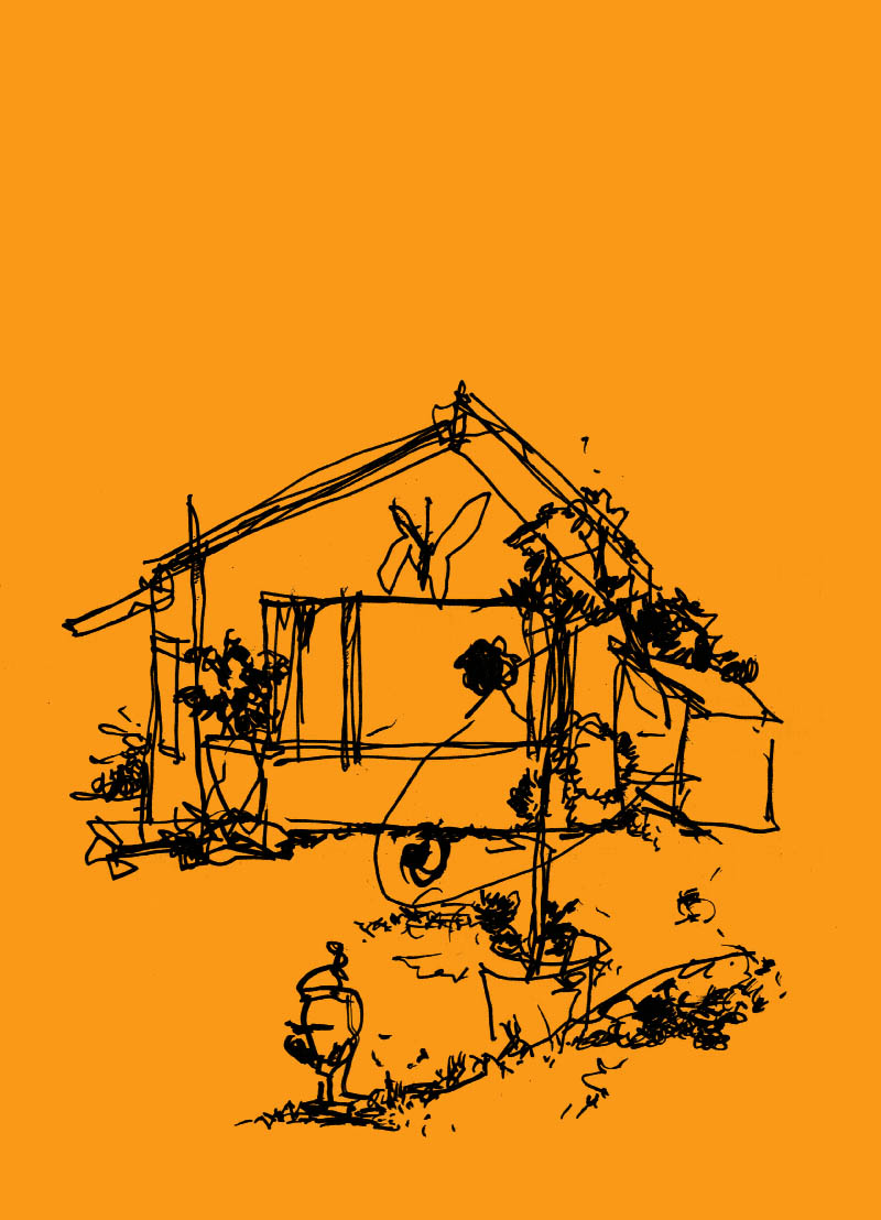 Freizeitgeist, the spirit of sparetime. In the century of self the place where we spoil ourselves becomes our shrine. 16 A4 blind drawings of paradise homes. Acrylic on colored paper. 2013