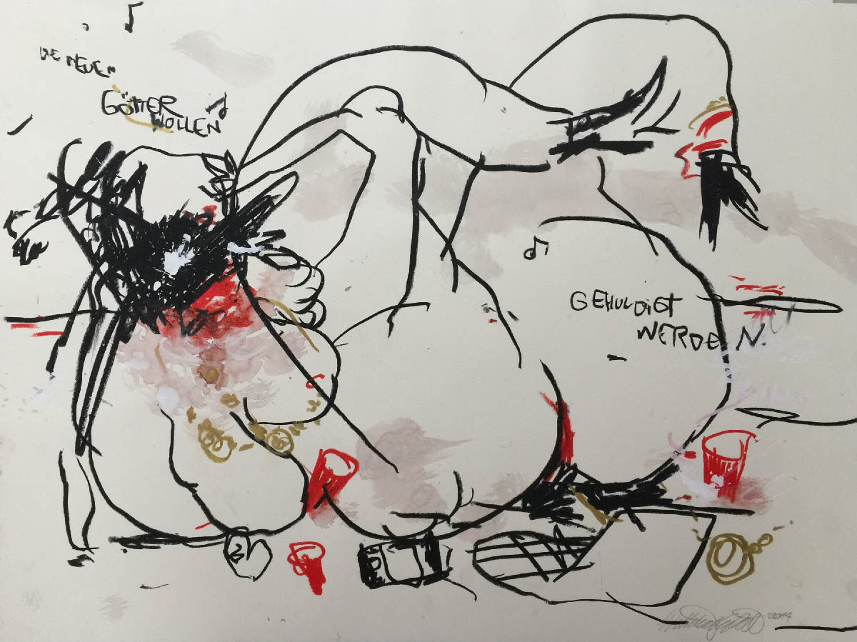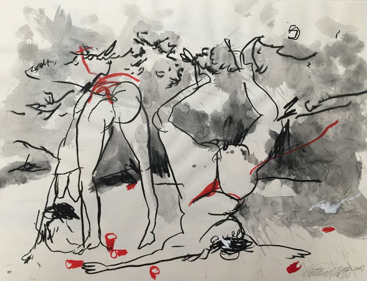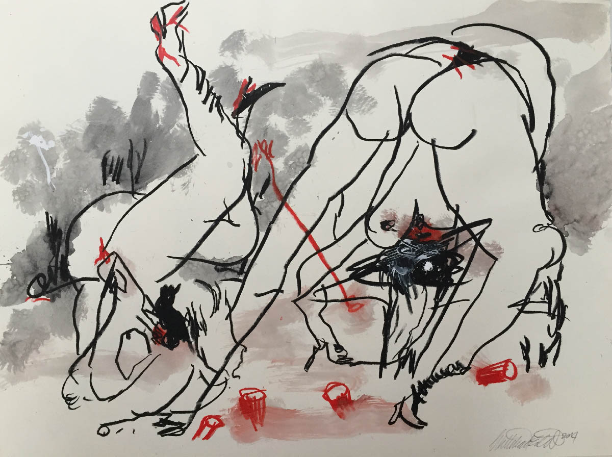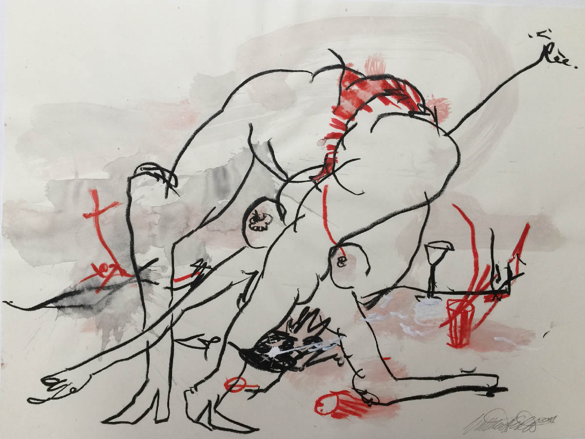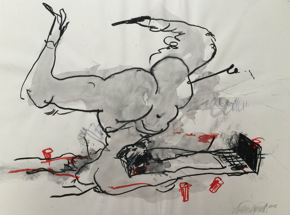 A series of drawings on friends and yoga. All 50 x 70, ink and crayon on paper.