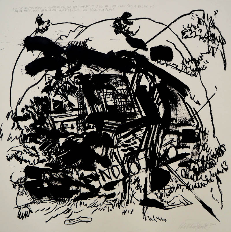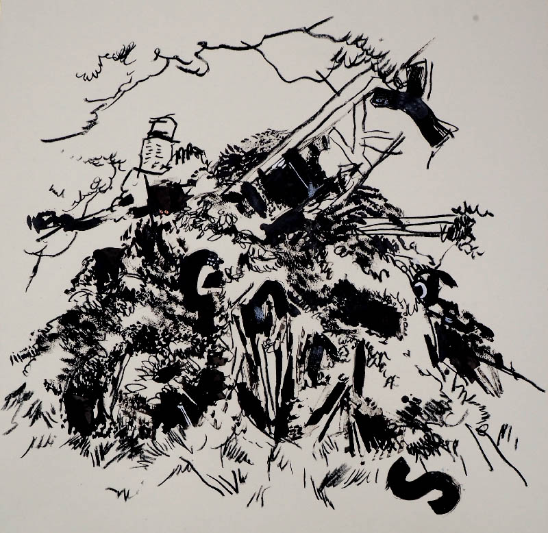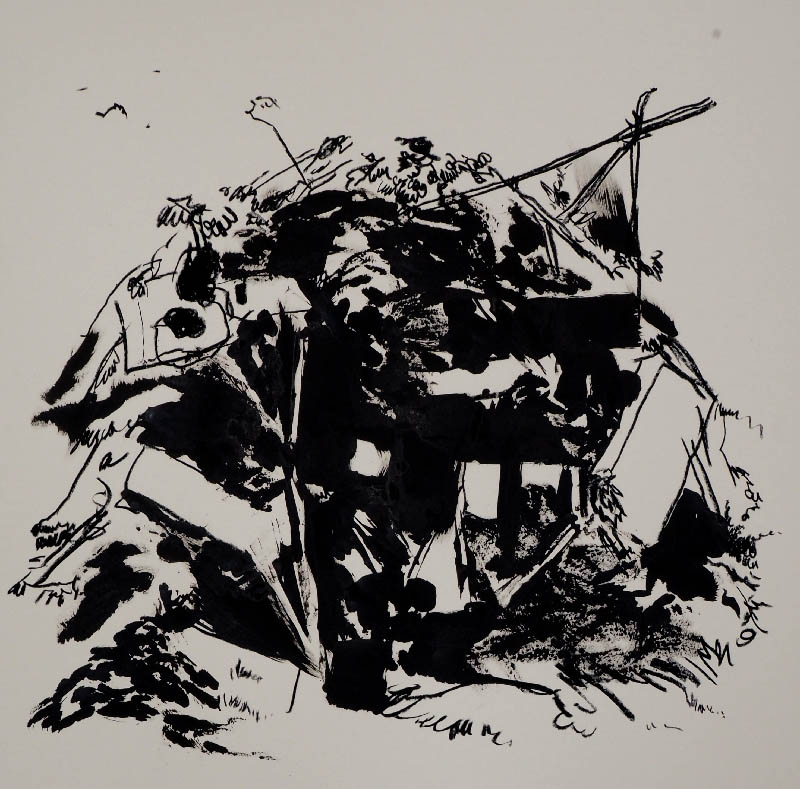 All ink and acrylic on paper 70 by 70cm